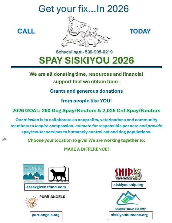 Scott Valley Vet: 530-468-5366 9305